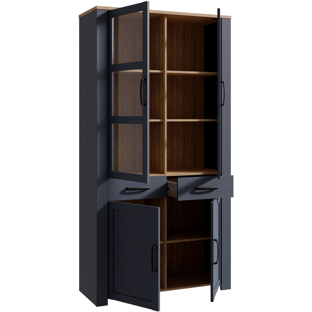 Florence High Rock 4 Door Matt Black and Riviera Oak Display Cabinet