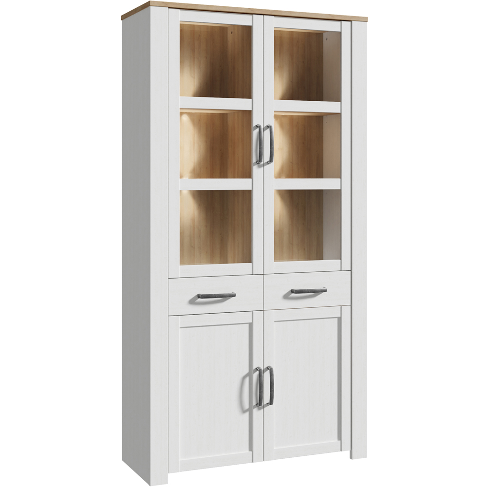 Florence Bohol 4 Door 2 Drawer Oak and White Glass Display Cabinet with LED Lighting