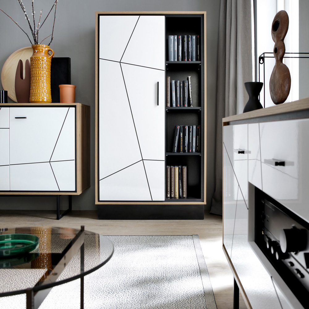 Elevate your living room with the Brolo TV unit. This modern design, crafted from laminated board, complements any interior. Two doors and two drawers, finished with simple metal handles, provide ample storage, while the spacious tabletop offers display space. Adjustable hinges ensure easy assembly and smooth operation. The walnut effect and dark panel finish add a touch of sophistication.