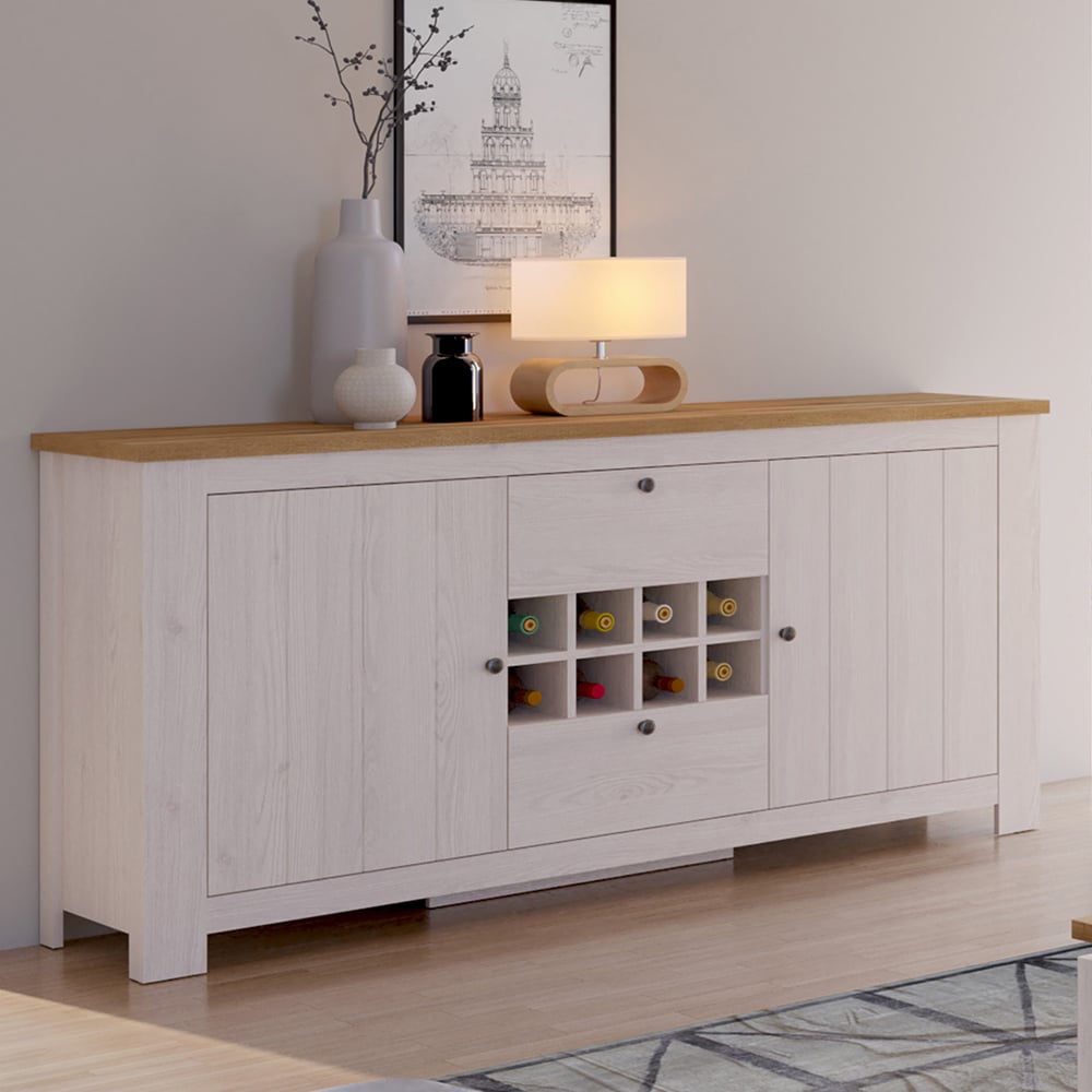 Florence Celesto 2 Door 2 Drawer White and Oak Sideboard with Wine Rack