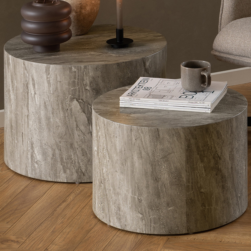 Florence Dice Round Grey Marble Coffee Table Set of 2