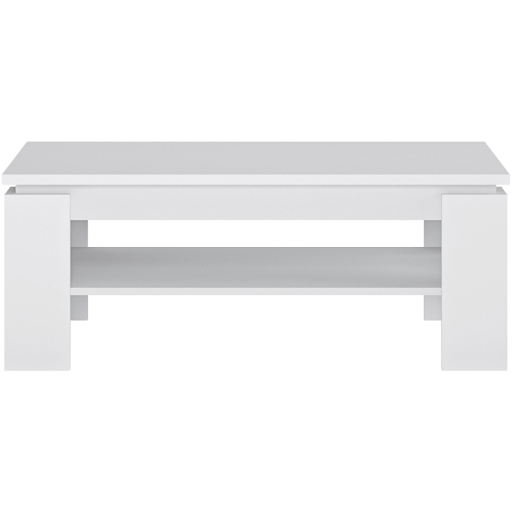 Create a welcoming atmosphere with the Florence Fribo Alpine White Large Coffee Table. Its generous 110cm length provides ample space for convivial coffee moments. A handy lower shelf keeps remotes and magazines organised. Crafted from durable laminated chipboard, this stylish white table offers resistance to damage, scratches, moisture, and high temperatures, ensuring lasting quality.