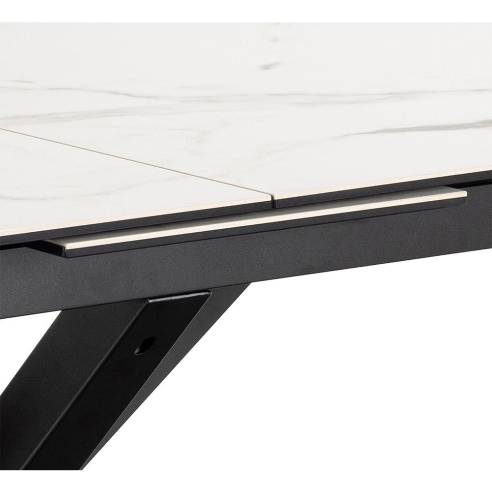 This sleek, white marble-look ceramic dining table is perfect for stylish entertaining. A hidden synchronous extension mechanism adds practicality, while the heat and scratch-resistant surface ensures lasting durability.