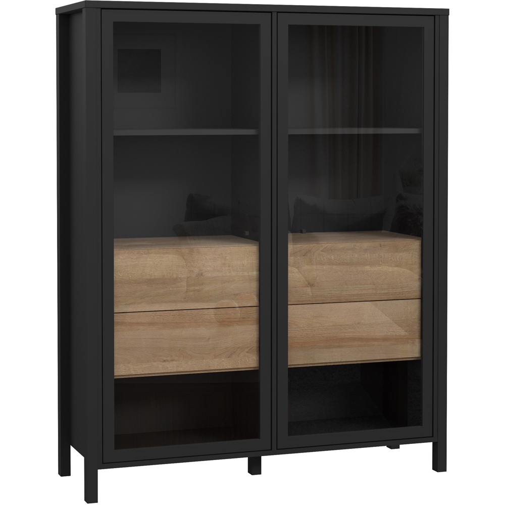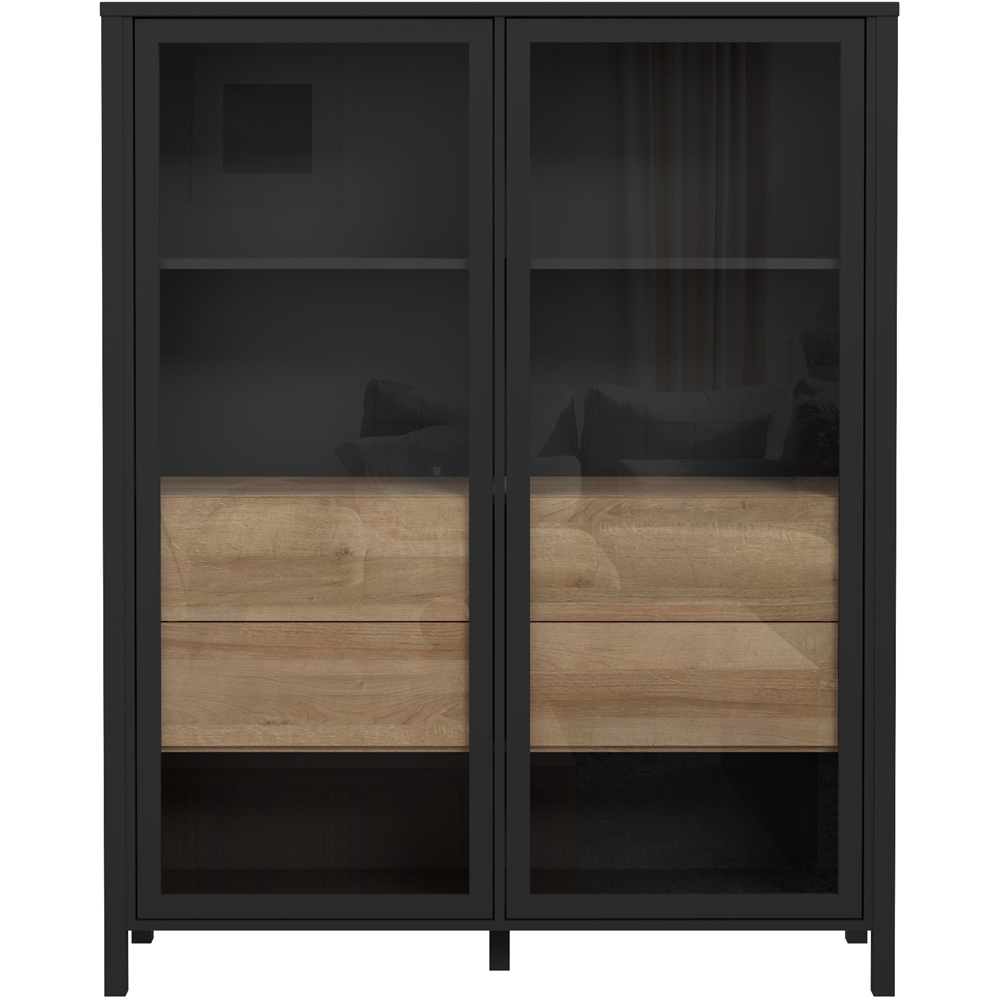 Florence High Rock 2 Door Matt Black and Riviera Oak Extra Wide Display Cabinet