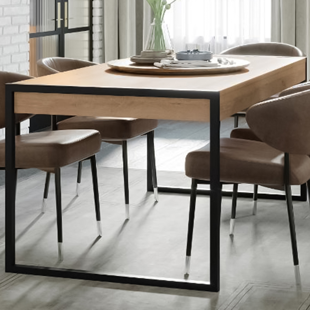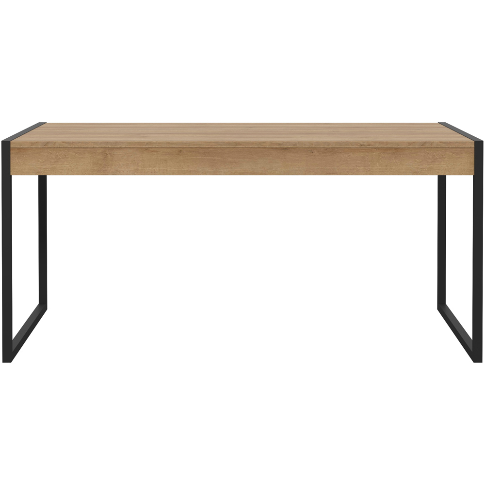 Make a statement with the High Rock desk. This contemporary design blends Riviera oak with deep matt black accents for a truly stylish piece. Its two drawers offer clever storage, while the spacious top comfortably seats four. Sleek black metal handles and a robust, frame-like metal leg design add a touch of industrial chic, perfect for adding loft-style character to any room. From living room to bedroom, this desk effortlessly blends sophistication and practicality.
