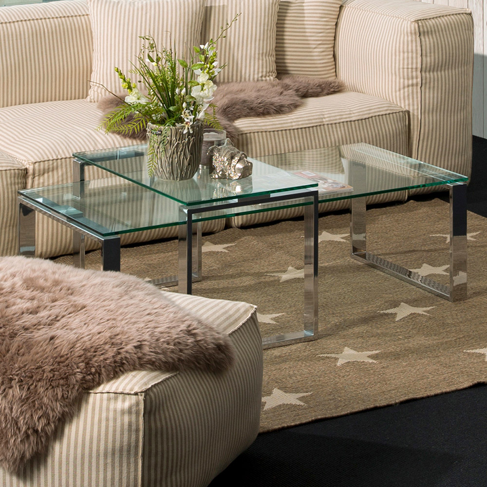 This elegant two-piece coffee table set will instantly upgrade your living space. Each piece features a clear tempered glass top, supported by a sleek chrome steel sledge base for a sophisticated, contemporary look.