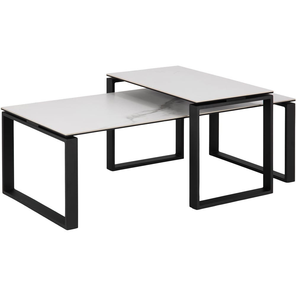 Florence Katrine White Ceramic Akranes Top Coffee Table Set of 2