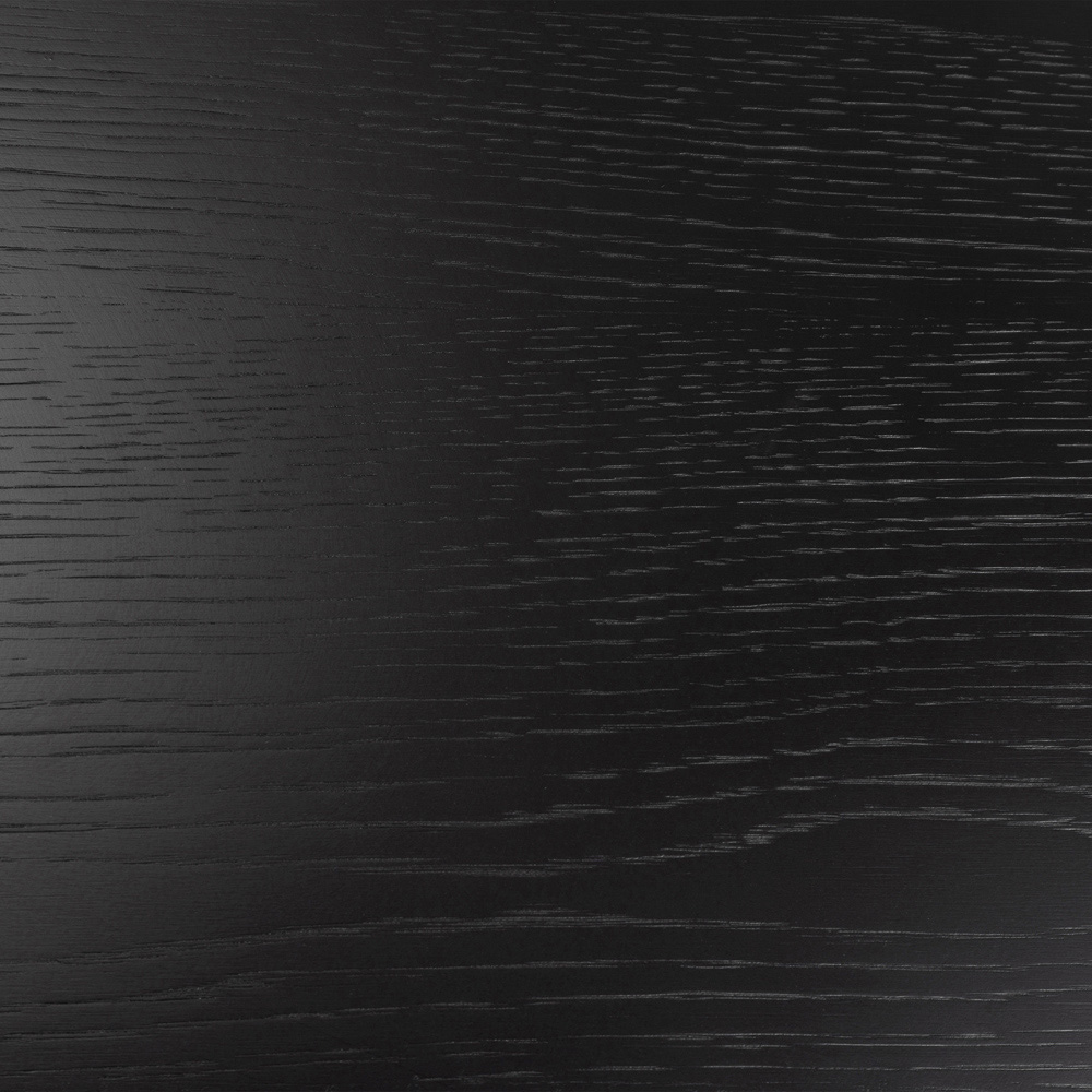 This elegant round dining table, finished in rich black oak veneer, features soft edges for a sophisticated look. A simple butterfly extension effortlessly increases the table's surface area, perfect for family dinners or larger gatherings.