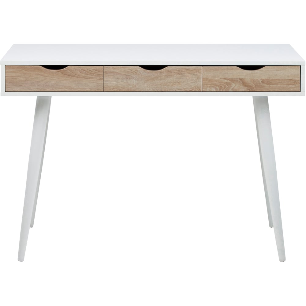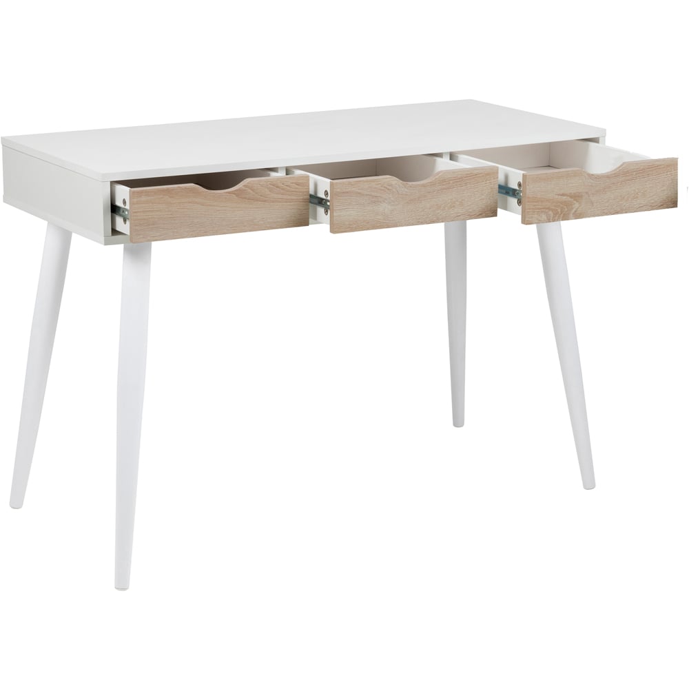 A stylish and functional workspace starts with this rectangular desk. The clean white tabletop and three smooth Sonoma oak drawers create a contemporary feel. Durable white powder-coated steel legs and metal runners ensure stability and a sleek aesthetic, perfect for any modern office.