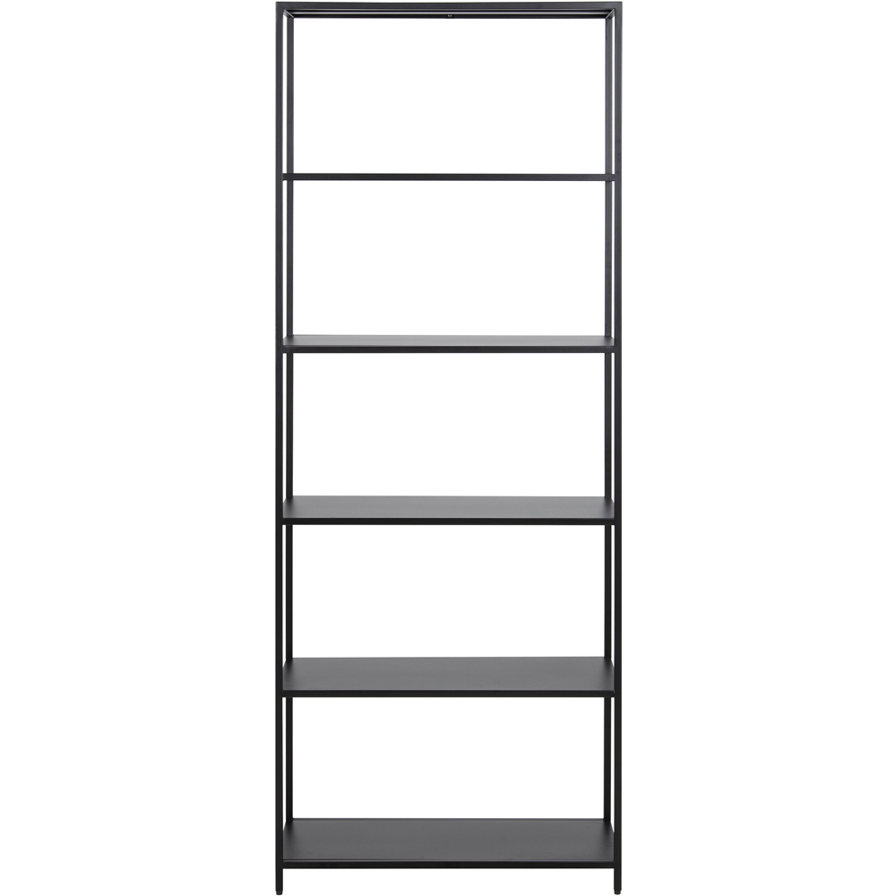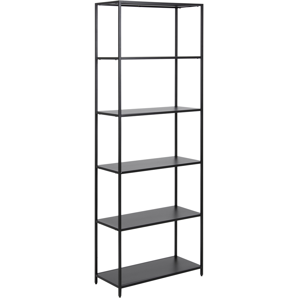 Revamp your storage solutions with this striking bookcase. Its robust matt black powder-coated steel frame, base, and five shelves deliver both ample storage and a contemporary industrial aesthetic. Perfect for adding a touch of modern style to any room.