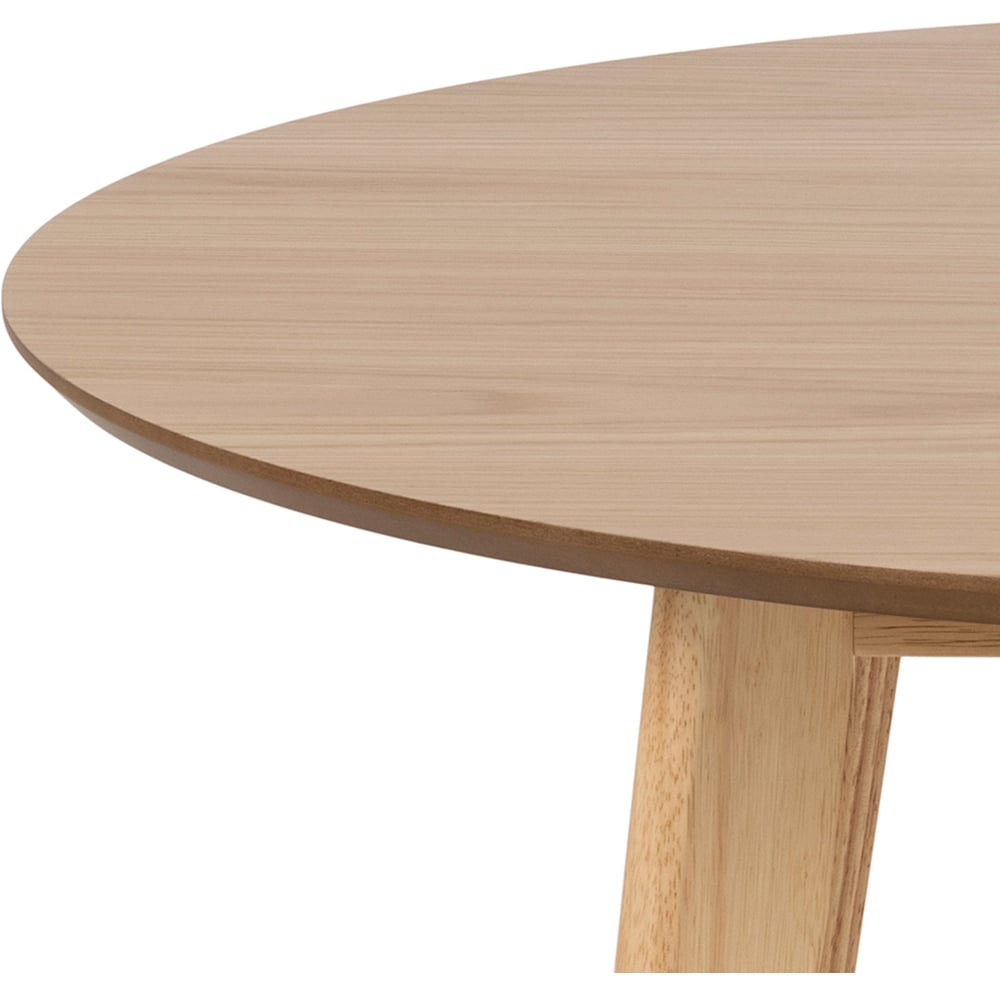 A stylish update for your dining room, this round table effortlessly blends natural beauty with contemporary design. The sophisticated oak veneer tabletop sits elegantly atop a harmonious matte oak-stained base. Perfect for modern living spaces, it's ideal for both everyday meals and special occasions.