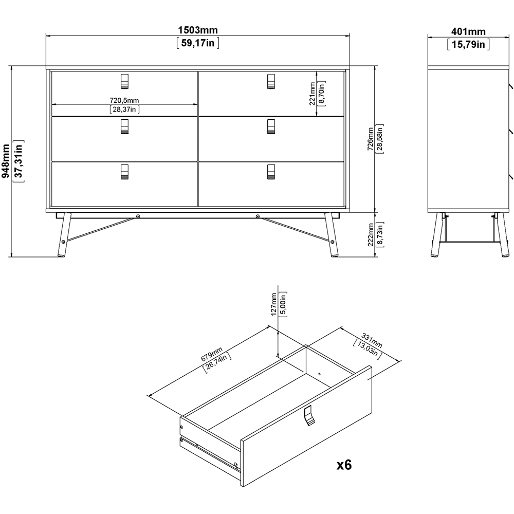 Florence Ry 6 Drawer Matt Black and Walnut Chest of Drawer