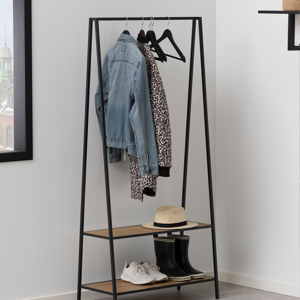 Florence Seaford 2 Shelf Oak and Black Metal Clothes Rack
