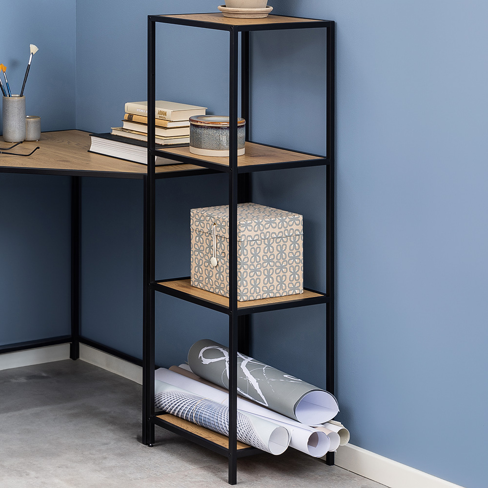 Elevate your home's style with the Florence Seaford bookcase. This striking piece features a robust matte black steel frame and base, complemented by three shelves finished in a chic matte wild oak effect. A sophisticated and durable storage solution for any room, this bookcase offers both practicality and aesthetic appeal.