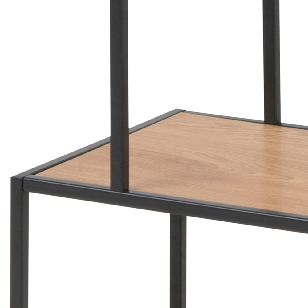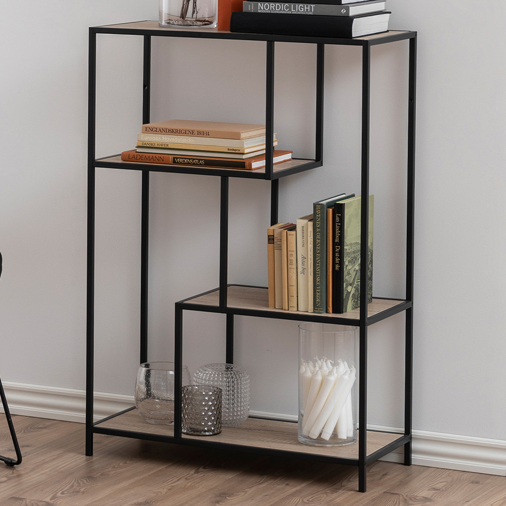 Florence Seaford 3 Shelf Oak and Black Metal Asymmetrical Bookcase