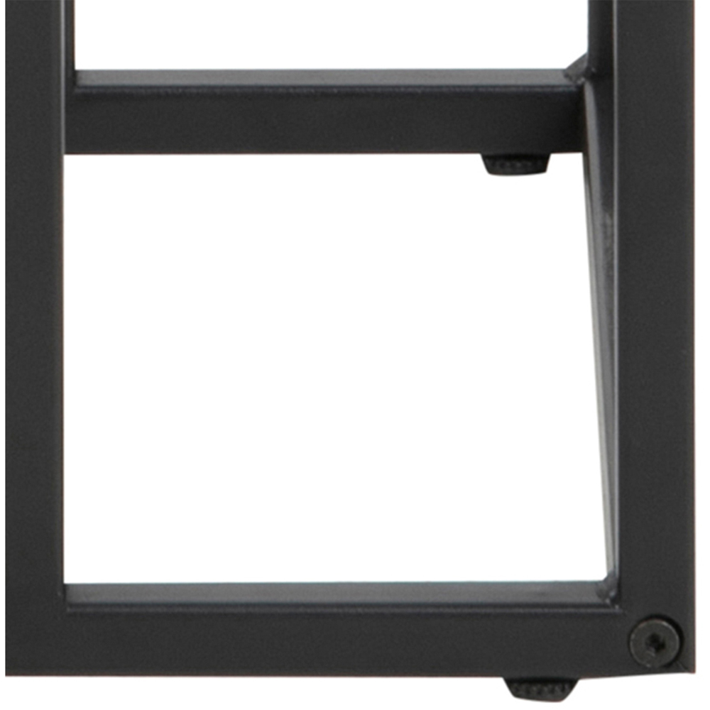 This rectangular side table brings understated elegance to any room. A sophisticated ash black top rests on a sturdy matt black steel base, creating a versatile piece that effortlessly blends style and practicality. Its sleek design makes it a perfect addition to diverse interiors.