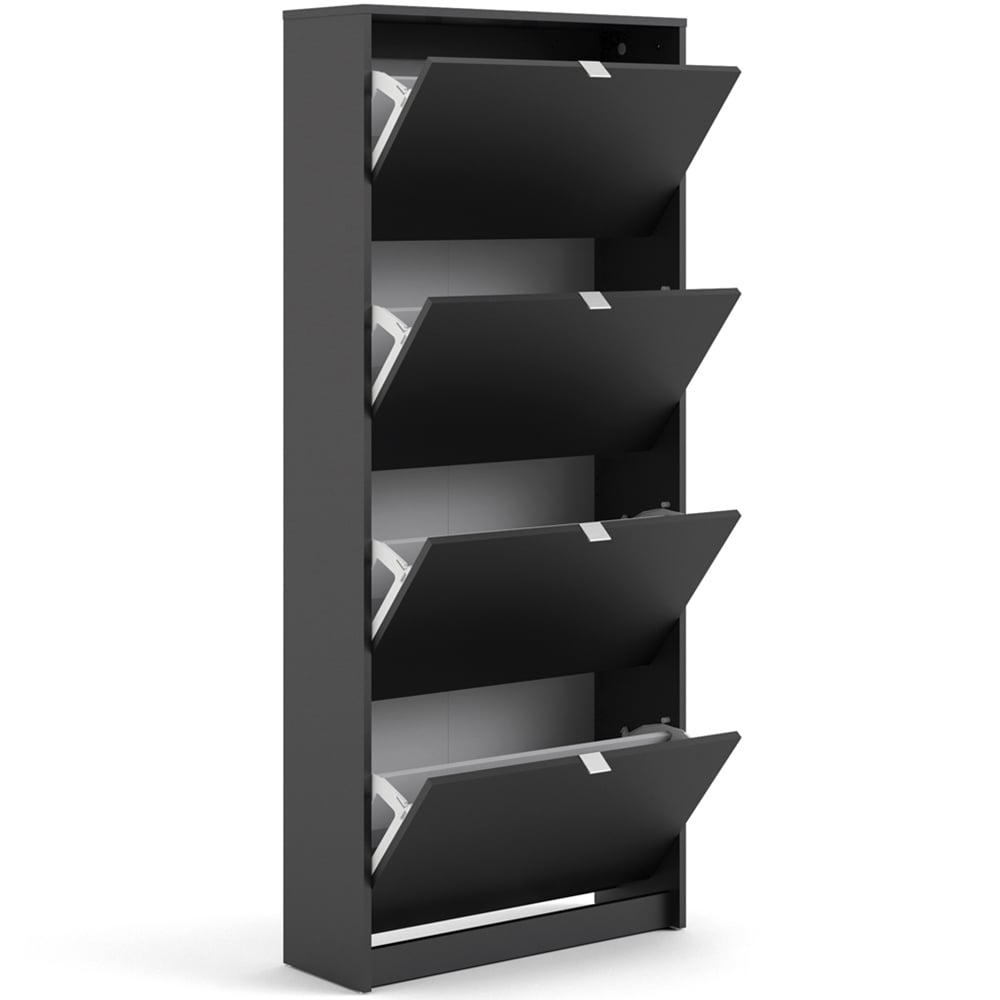 Florence Shoes 4 Flip Door Double Layer Matt Black Shoe Storage Cabinet