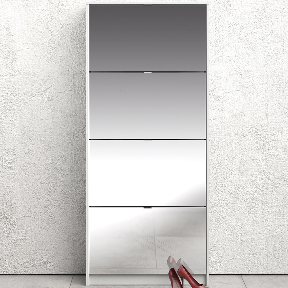 Florence Shoes 4 Flip Door Double Layer White Mirrored Shoe Storage Cabinet