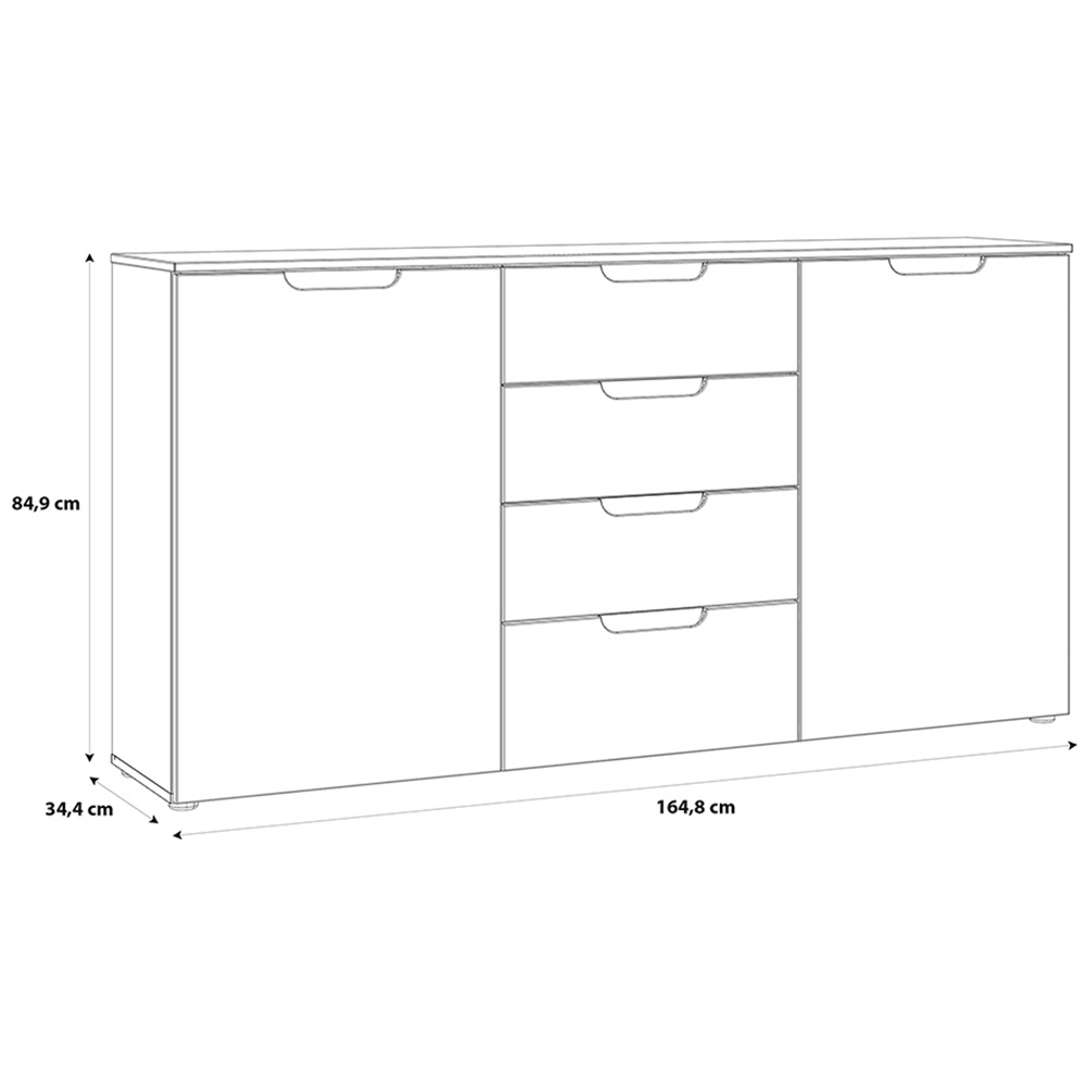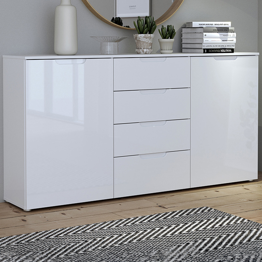 Florence Sienna 2 Door 4 Drawer White High Gloss Wide Cabinet