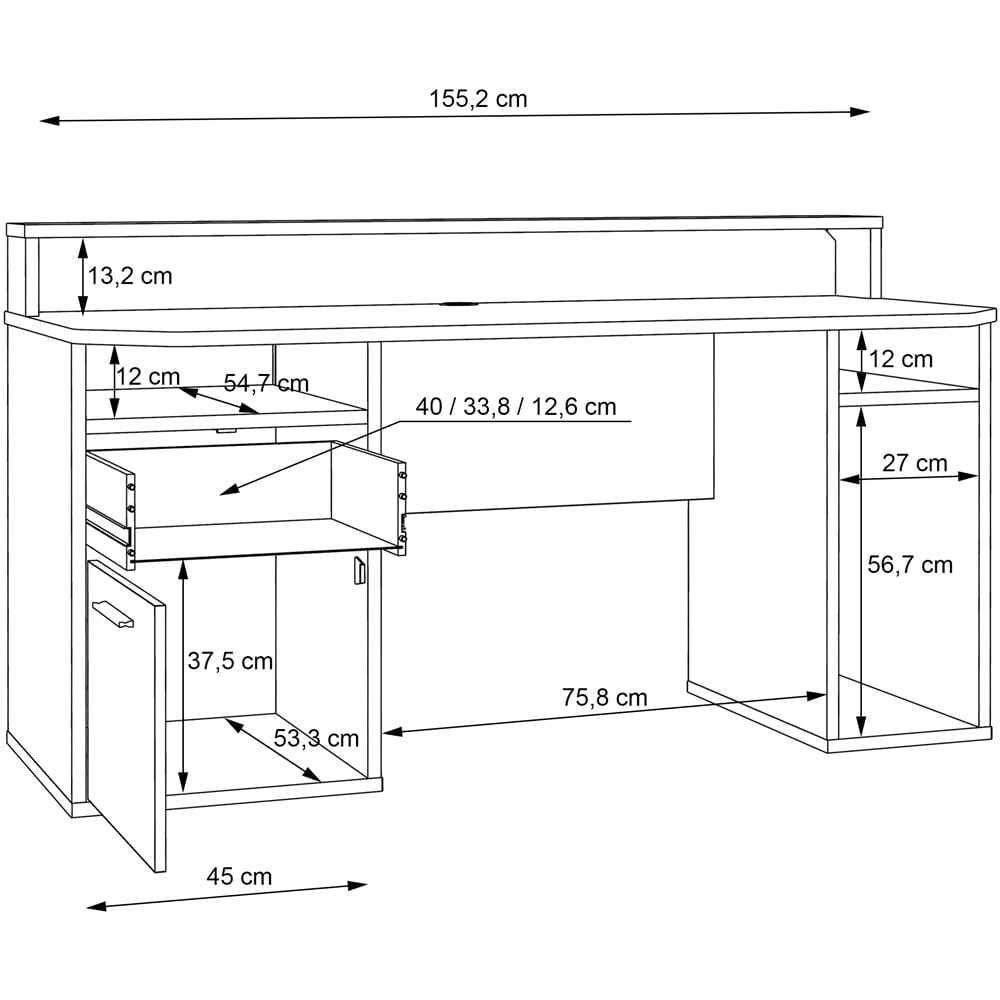 The Tezaur gaming desk: a bold and stylish statement piece for any gaming enthusiast. Precision-crafted with meticulous attention to detail, it's the perfect complement to your gaming consoles, elevating your setup. Experience the next level with its built-in strip lights, dramatically transforming your gaming space. More than just a desk, the Tezaur delivers an enhanced gaming experience.