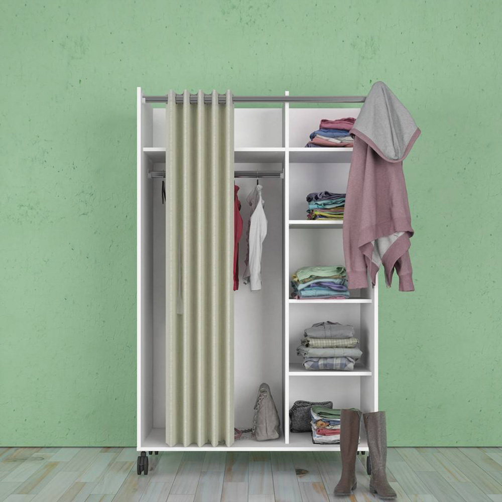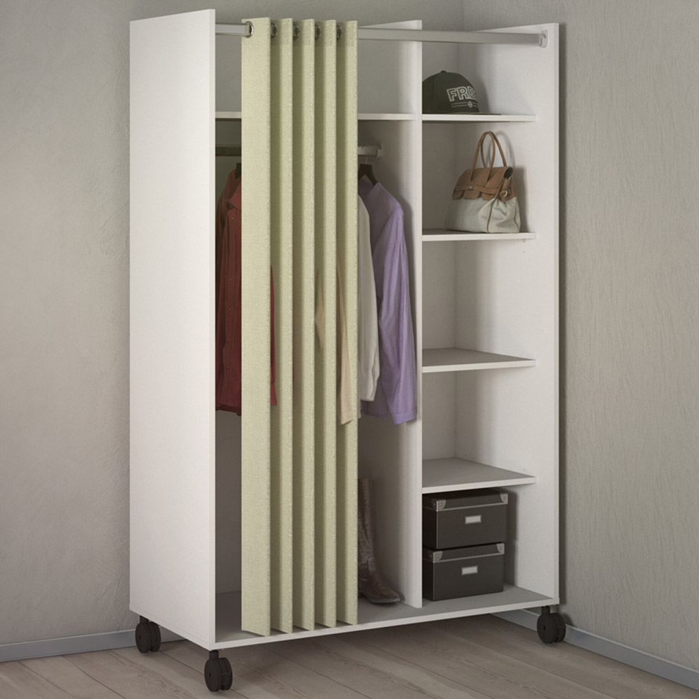 Florence Uppsala 6 Shelf White Open Mobile Wardrobe with Beige Textile Curtain