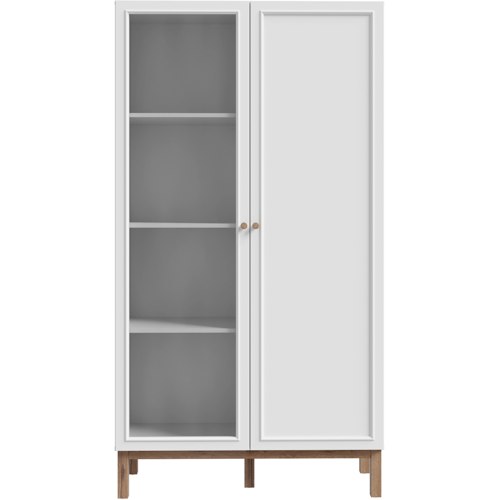 The Wensley Display Cabinet: a blend of light grey and oak, bringing contemporary style to your home. Its clean lines and modern design are complemented by stylish wooden knob handles and a smooth, soft-closing system. Upgrade your display further with optional LED lighting (sold separately) for a truly captivating showcase.