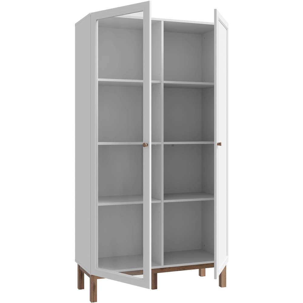 Florence Wensley 2 Door Light Grey and Oak Glass Display Cabinet