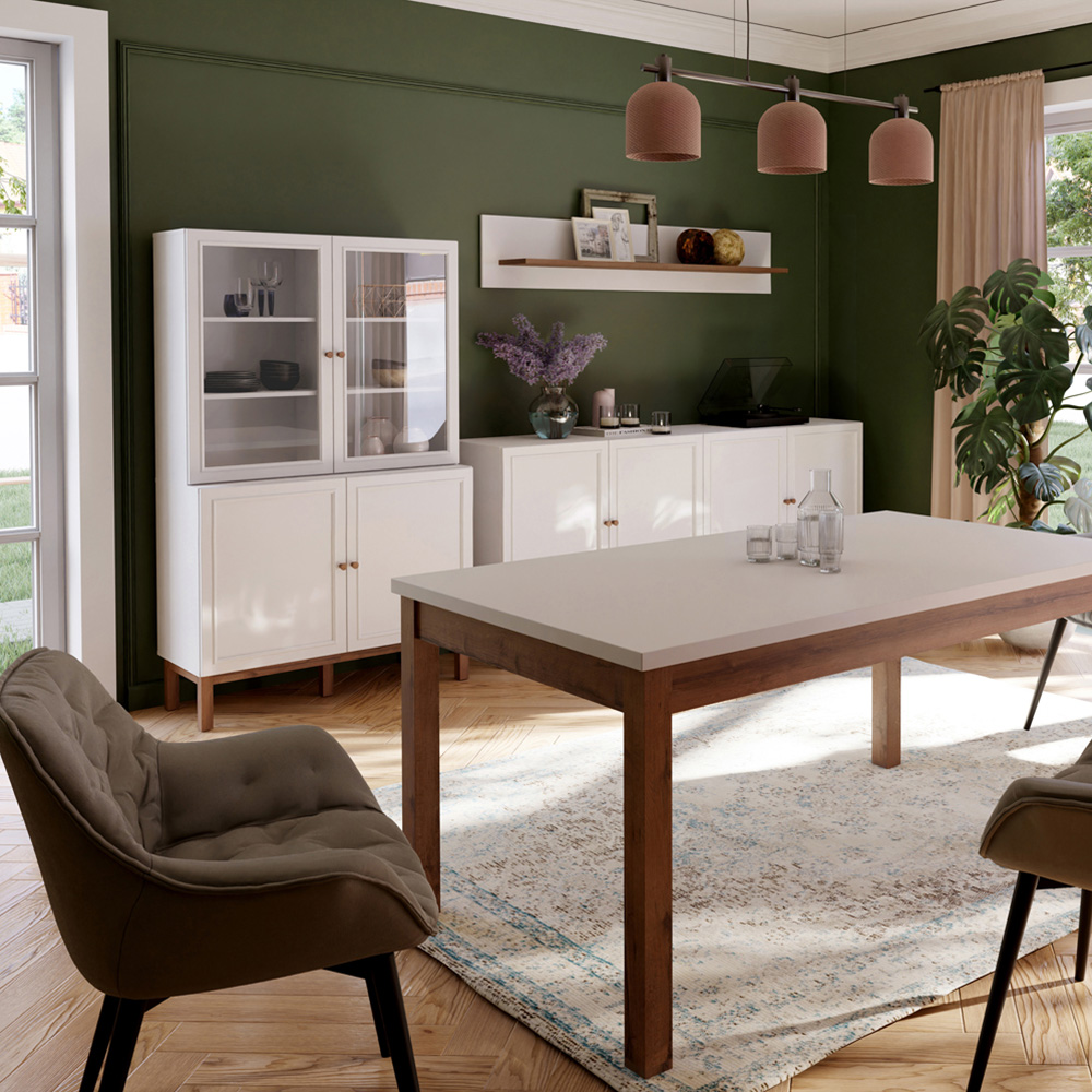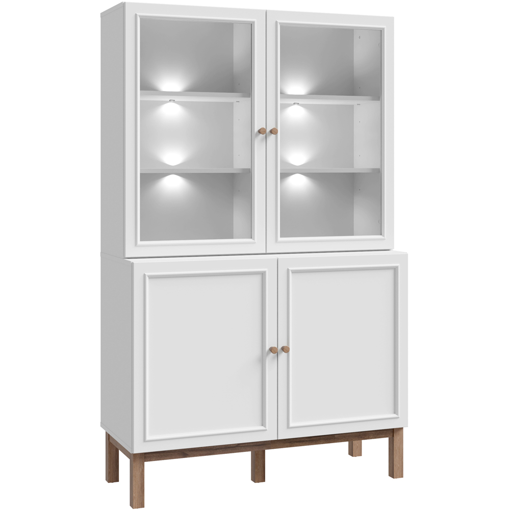 Showcase your cherished possessions with the Wensley Display Cabinet, beautifully crafted in a sophisticated Light Grey and Oak finish. This modern piece exudes elegance, featuring integrated LED lighting that highlights your treasures perfectly. The soft-closing system ensures smooth operation, while the stylish wooden knob handles add a touch of refinement. With two normal doors and two glass doors, this cabinet offers both practicality and aesthetic appeal, making it a stunning addition to any living space.
