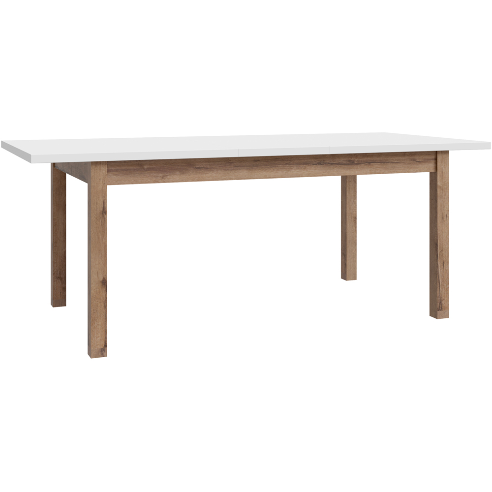 The Wensley dining table: a stylish and practical addition to any home. Its light grey and oak finish offers a contemporary look, perfect for modern living. Need extra seating? No problem! This extendable table easily expands to 207cm, comfortably seating up to eight. The clever, hidden insert makes extending a breeze. Durable ABS edging ensures lasting quality. When extended, it measures a generous 207cm x 90cm.