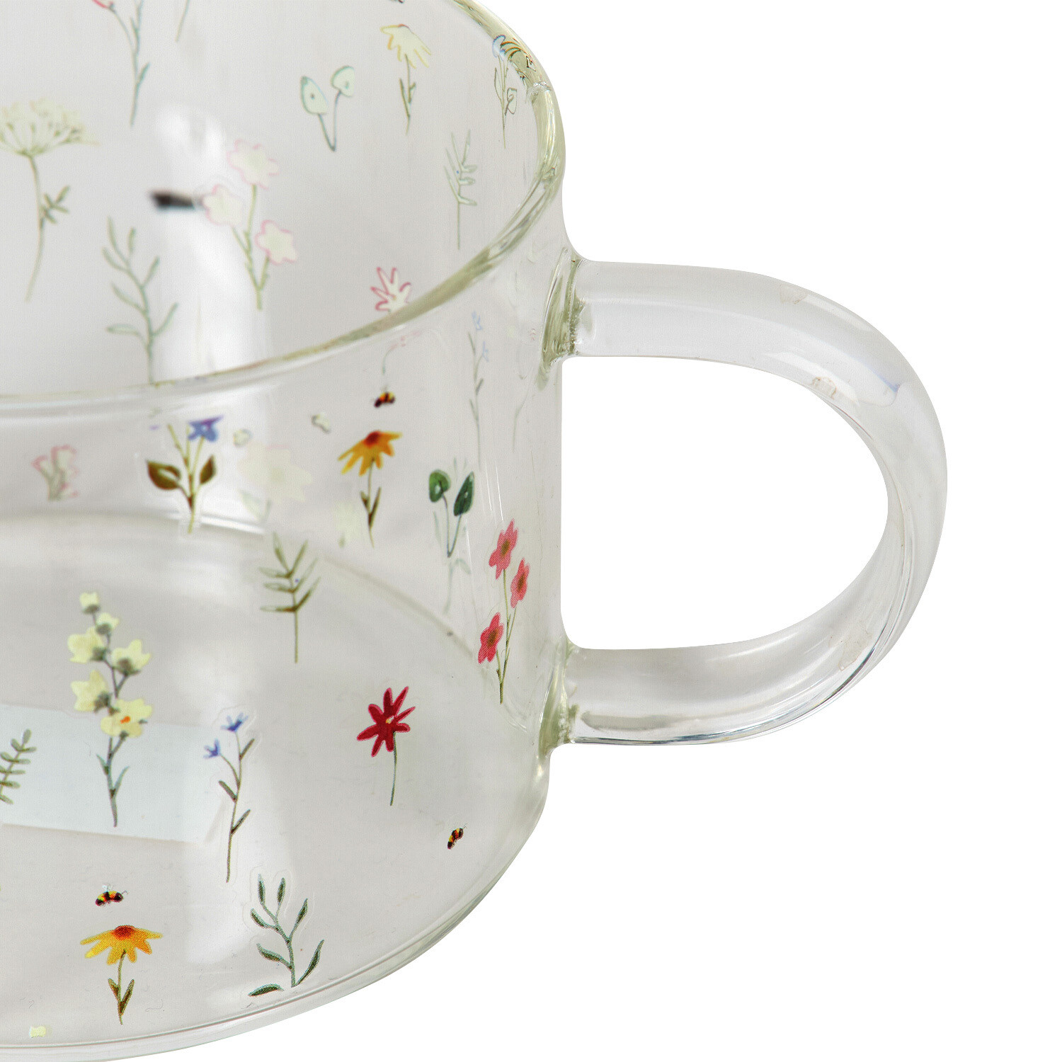A charming addition to any kitchen, this Flower Market glass mug boasts a delightful floral print. Crafted from high-quality Borosilicate glass, it offers a superior finish and is suitable for both hot and cold beverages. A thoughtful gift for family and friends, this mug complements other items in the Flower Market collection for a coordinated look.