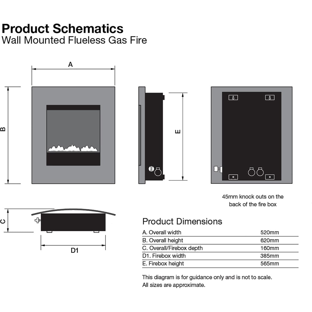 Introduce a modern focal point to your living space with the Ebony Flueless Gas Fire. Its curved black glass fascia brings a touch of elegance to any room. This 100% efficient, wall-mounted heater boasts 100% efficiency, optimising energy consumption, while the integrated Oxygen Depletion Sensor ensures safe operation. Ideally suited for smaller spaces, this gas fire requires installation by a qualified professional to guarantee optimal performance and safety.