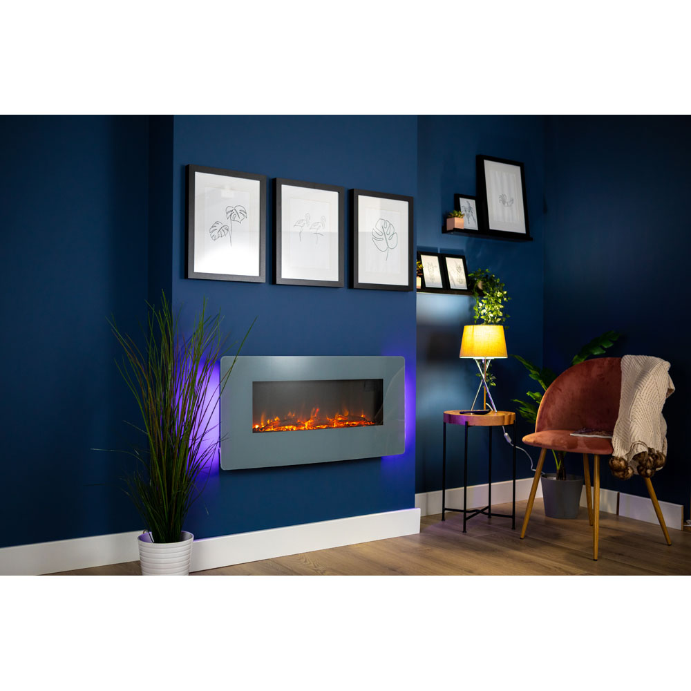 Spark your imagination with the Pasadena ERP Electric Fire, showcasing a sleek, curved grey glass design that effortlessly blends warmth and contemporary style into your living space. This versatile electric fire features three distinct backlight options, allowing you to tailor the ambience to perfectly match your mood and décor. Select from a log, pebble, or coal-effect fuel bed to enhance the realistic flame effect. Designed for both wall-hung installation and freestanding display, its efficient 1.5kW bottom-vented heater provides ample warmth, making it an ideal, energy-conscious choice for any modern home.