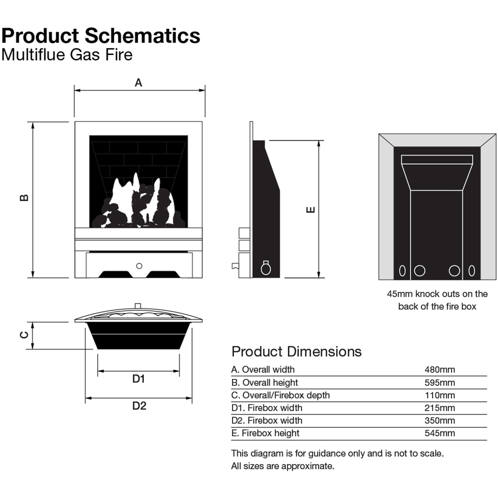 The Focal Point Soho Multiflue Gas Fire in Chrome blends timeless elegance with contemporary finesse. This inset gas fire features an authentic coal fuel bed and boasts a powerful 3.2kW heat output, perfect for creating a warm and inviting atmosphere on chilly evenings. Complete with a three-year guarantee for peace of mind. Please ensure installation is carried out by a qualified professional.
