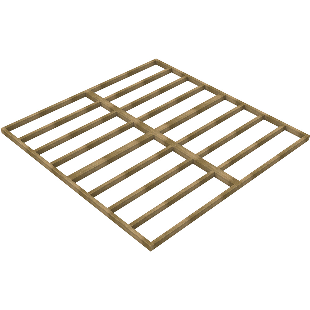 The Forest Garden 10 x 10 ft Shed Base provides a reliable, solid foundation for your shed. Pressure-treated for ground contact and rot resistance, this incised base is a quick and easy solution for preparing a level base, eliminating the need for concrete or slabs. Simply install as directed for fast, dependable results. Check dimensions and use on sheds accordingly.