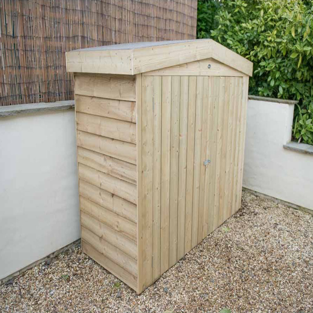 This generously sized outdoor store offers a stylish and practical storage solution, surpassing the limitations of a standard shed. Its double doors provide easy access to ample space for tools, large garden equipment, and even bikes – comfortably holding two adult and two children's bikes, plus accessories. With approximately 2000L of storage capacity, the store boasts traditional overlap boarding on its side and back panels, complemented by smooth-planed shiplap tongue and groove on the front and doors. The pressure-treated base, resting on bearers, ensures protection against water damage and is guaranteed against fungal decay for 15 years. Crafted in the UK from FSC-certified timber, this store is available with a pent roof option and arrives flat-packed for easy self-assembly. All necessary felt, fixings, and instructions are included, along with a plate hasp and staple latch (padlock sold separately.)