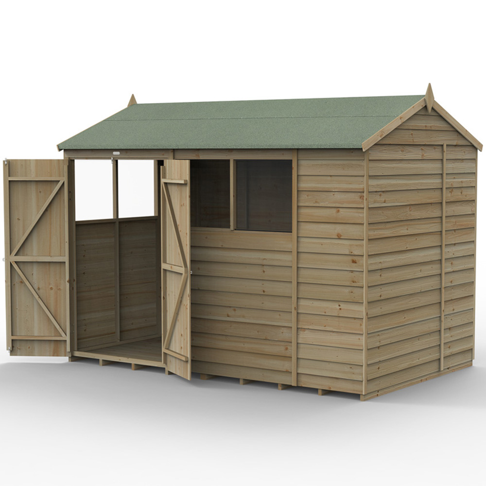 Forest Garden 4LIFE 10 x 6ft Double Door 4 Windows Reverse Apex Shed