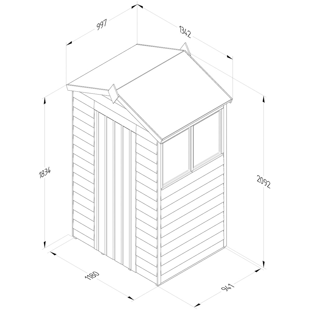 Forest Garden 4LIFE 4 x 3ft Single Door 2 Windows Apex Shed