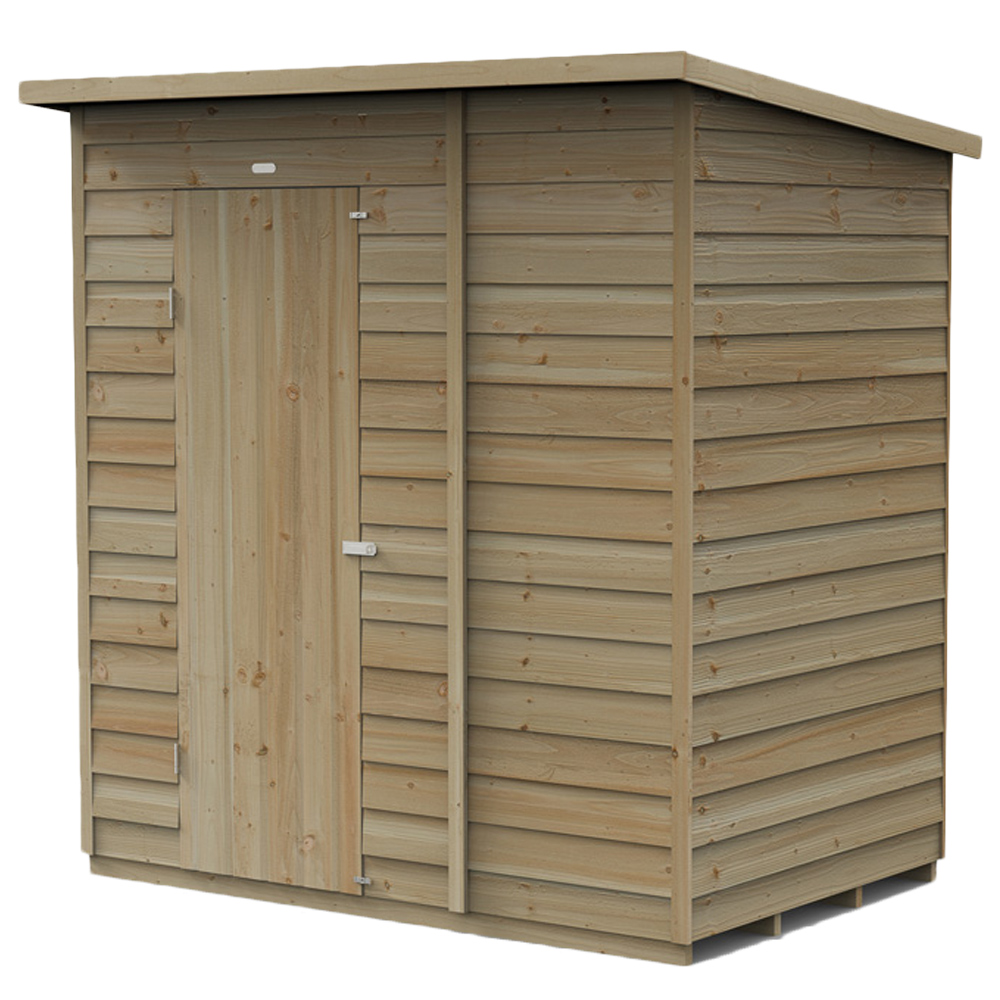 Maximize your garden space with the 6 x 4ft Single Door Overlap Pressure Treated Pent Shed by Forest Garden. This shed boasts a redesigned modular panel system, built with 30% thicker framing and straight-cut 7mm overlapping boards for flexibility and superior water runoff. Pressure treatment ensures a 25-year anti-rot guarantee, eliminating the need for ongoing preservative treatments. Unlike standard sheds, its solid timber floor supports heavier items with ease. The durable 8mm solid sheet roof, finished with green mineral felt, provides complete weather protection. A double-Z frame enhances strength and prevents door movement. Hidden hinges and a padlock-ready hasp with staple latch (padlock not included) offer enhanced security. The door is adaptable for left or right-hand opening. Shatterproof PET glazing provides superior security to traditional glass, resisting yellowing and fading. This handcrafted UK shed, made with FSC-certified timber, features a classic pent roof, smooth-planed bargeboards, and a diamond-shaped finial. A complete fixing kit and clear instructions ensure straightforward assembly. Enjoy free delivery to most UK addresses via our White Glove Service—your shed will be placed exactly where you want it, with all packaging removed.