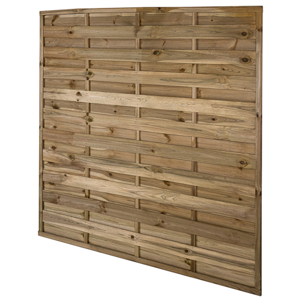 Enhance your garden boundary with this attractive Flat Top Panel. Its unique design features smooth-planed, horizontally mounted boards with a grooved profile, arranged in a staggered pattern for a sophisticated look. The high-quality rebated frame, secured with mortise and tenon joints, ensures strength and lasting durability. Crafted from FSC-certified timber and pressure treated for longevity, this panel comes with a 15-year anti-rot guarantee. Measuring 1.8m x 1.8m, it's a stylish and robust solution for your garden fencing needs.