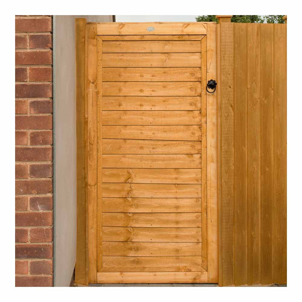 This British-made overlap gate is a perfect complement to 6ft panels of the same design, looking especially stunning with our Forest Trade Lap Panel or Premier Lap Panel. The sturdy frame construction adds strength and durability. Crafted from FSC® certified timber, it's dip treated for a 10-year anti-rot guarantee (with periodic re-treatment) and features a beautiful golden brown finish. Fixings are sold separately.