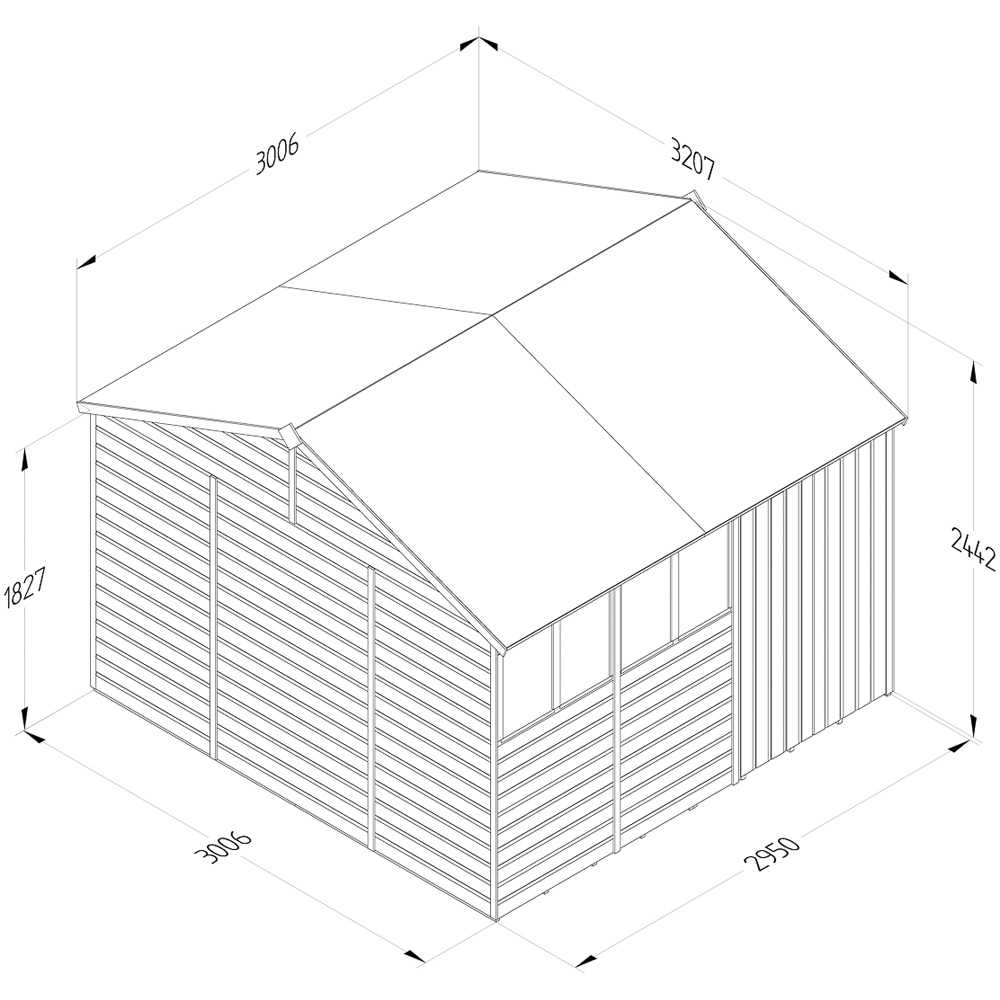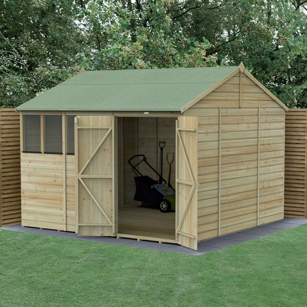 Forest Garden Beckwood 10 x 10ft Double Door 4 Windows Reverse Apex Shed