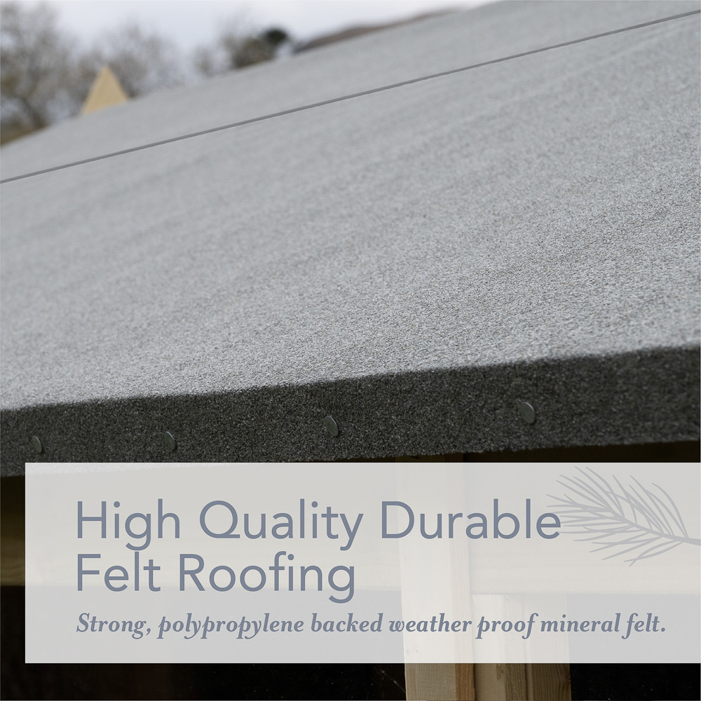 The Forest Garden Beckwood 10 x 6ft Single Door 2 Window Shiplap Pent Shed offers a robust storage solution for garden tools and more. Proudly designed and manufactured in Britain, this shed is built to withstand the elements, providing reliable protection for bicycles, fishing equipment, or any outdoor gear. Its construction features robust, interlocking pressure-treated shiplap cladding, ensuring a watertight seal and a 25-year anti-rot guarantee (no annual treatment needed!). The framing is 30% thicker than most wooden sheds, and the extra-thick interlocking tongue and groove floor easily handles heavier items. A hardwearing 8mm solid sheet roof provides lasting durability. Security is enhanced with a strong double-Z door frame preventing movement, hidden hinges, and a heavy-duty pad bolt (padlock not included). The door can be fitted for left or right-hand opening. This shed’s traditional pent roof design complements any garden, and it arrives with all fixings and clear instructions for straightforward assembly. Forest Garden's white glove delivery service ensures free delivery to most UK addresses, with placement in your chosen garden location and packaging removal included.