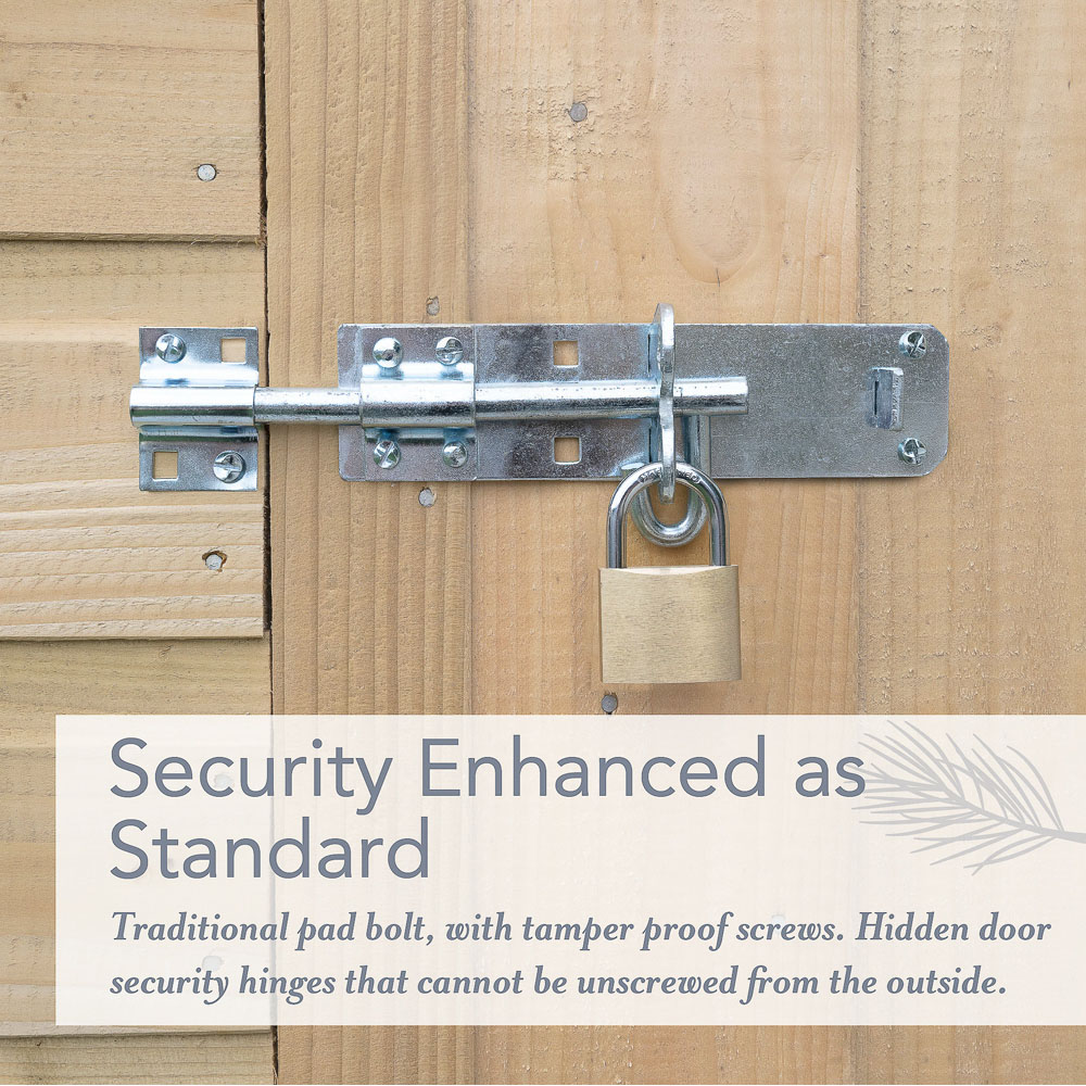 The Forest Garden Beckwood 6 x 4ft Single Door Single Window Shiplap Reverse Apex Shed offers secure storage for your gardening tools, bicycles, fishing equipment, or outdoor gear. Proudly designed and manufactured in Britain, this shed boasts robust construction for enduring weather resistance. Its interlocking pressure-treated shiplap cladding creates a watertight seal, while 30% thicker framing than comparable sheds ensures lasting durability. A 25-year anti-rot guarantee on the pressure-treated wood eliminates the need for annual preservative treatment. The extra-thick interlocking tongue and groove floor comfortably supports heavier items. The hardwearing 8mm solid sheet roof provides reliable protection. Security features include a strong double-Z door frame preventing movement, hidden hinges, and a heavy-duty pad bolt (padlock not included). The door can be fitted for left or right-hand opening. Its attractive reverse apex roof complements any garden. A full set of fixings and clear instructions ensures straightforward assembly. Free delivery to most UK addresses via a white-glove service includes drop-off at your desired garden location and packaging removal.