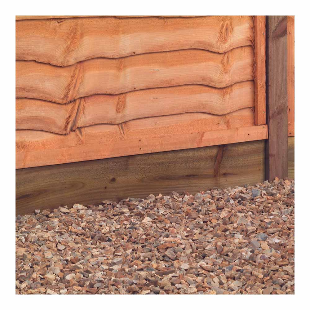 Extend the life of your timber fence panels with these durable gravel boards. Keep ground moisture away and prevent rot and decay with these pressure-treated boards, ideal for level or sloped installations. Made in the UK from FSC certified timber, they come with a 15-year anti-rot guarantee. Dimensions: 1.83m L x 15cm H x 2.2cm D. Minimum order quantity: 3 boards.