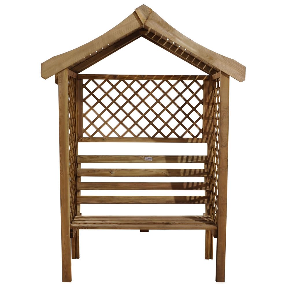 Create a charming garden retreat with the Parisienne 2-seater arbour (6.9ft x 5ft x 2.1ft). This elegant arbour features a solid roof and trellis back and sides, ideal for climbing plants. Enjoy shade on warm days thanks to the slatted timber roof. Designed to comfortably seat two, this arbour is a beautiful addition to any garden. Protect your investment with one of our durable, waterproof garden furniture covers – find the perfect fit from our wide range.