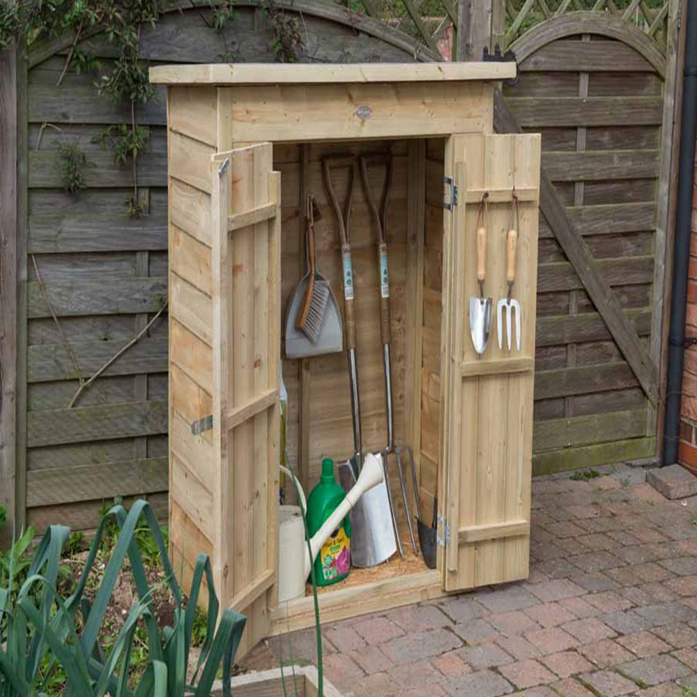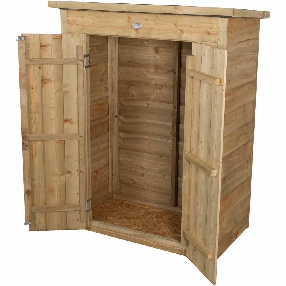 Keep your garden tools and equipment neatly stored with this stylish and practical Garden Store. Designed for smaller spaces, this 600L store boasts a versatile pent roof—adjustable to slope forward or backward—providing ample room for taller items such as spades, forks, and brooms. Its compact design is perfect for patios, near entrances, or any garden location. Crafted from high-quality, FSC-certified pressure-treated timber, the store features traditional overlapping boards and shiplap tongue and groove front panels with double doors. A felted roof and decorative barge boards add a touch of elegance. Hidden hinges enhance security, while a plate hasp and staple latch allow for the use of a padlock (not included). Made in the UK. An apex roof version is also available.