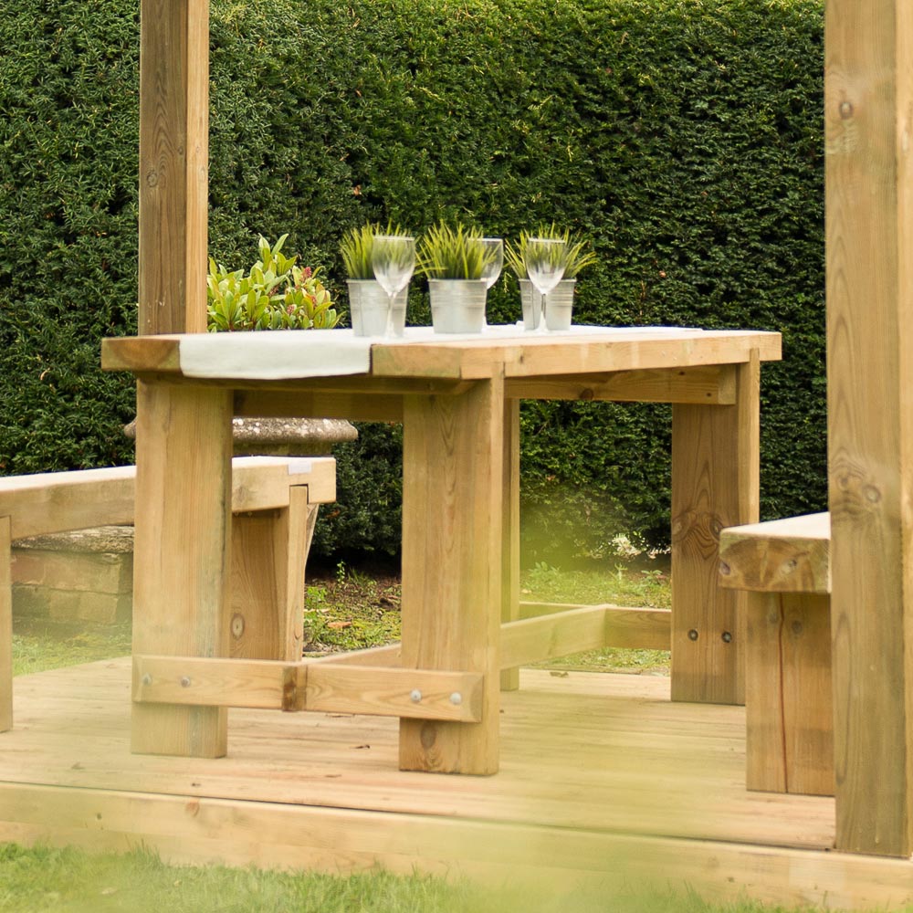 Enhance your outdoor space with the Refectory Table, a stylish and robust addition to any garden. This 1.8m table is crafted from smooth-planed, pressure-treated timber for a splinter-free finish, ensuring durability and longevity. The timber is FSC certified, providing peace of mind with its environmentally friendly sourcing and backed by a 15-year guarantee against rot and fungal decay. Designed to complement our sleeper benches (sold separately), it creates the perfect setting for al fresco dining with family and friends. Ideal for patios and decked areas. Delivered flat-packed for easy self-assembly with all fixings and instructions included. Extend the life of your table with one of our durable, waterproof garden furniture covers – find the perfect fit for your needs in our extensive range.