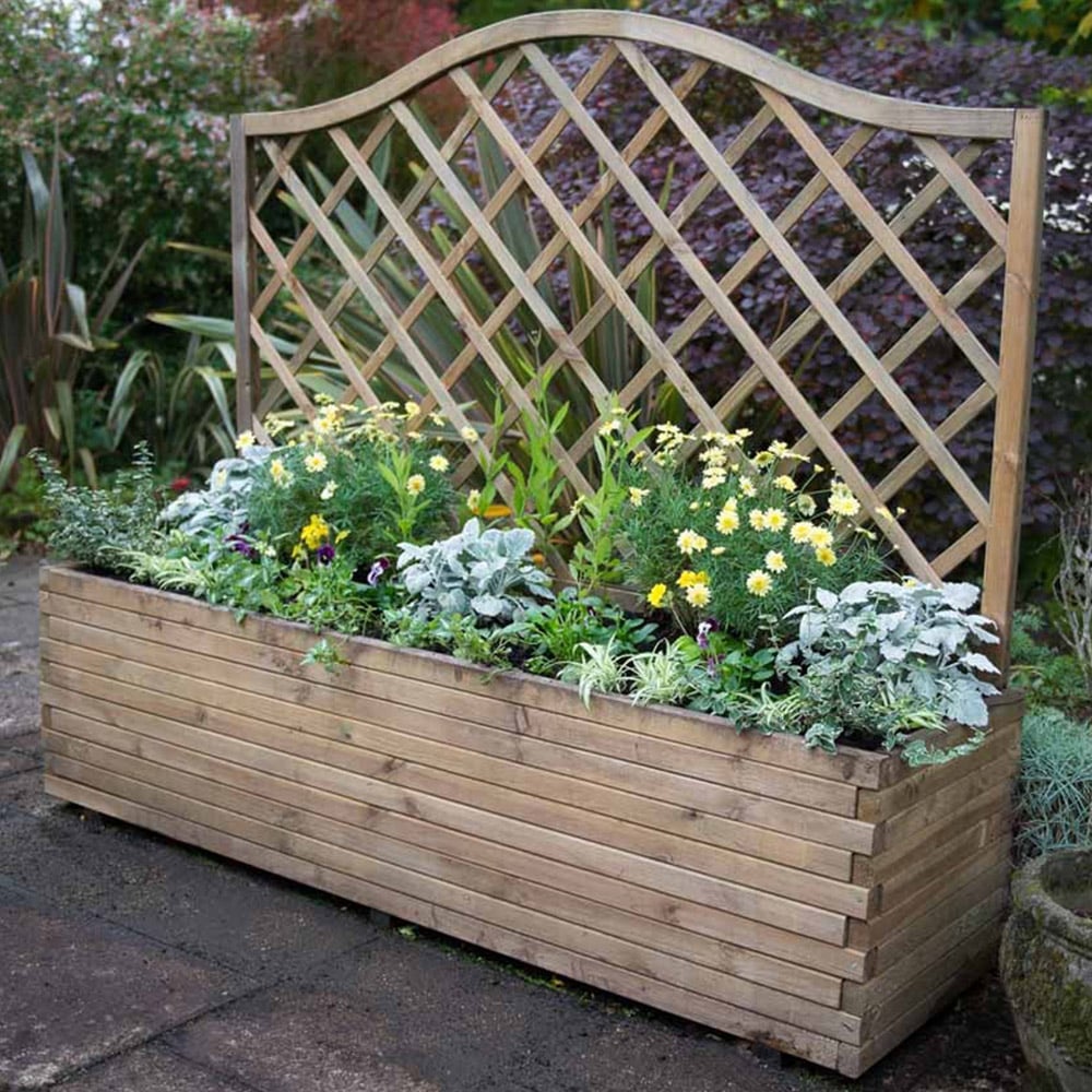 The spacious Venice Planter offers a stylish and practical solution for your gardening needs. This planter features an attractive integrated dome top diamond trellis, perfect for supporting climbing plants. Constructed from pressure-treated timber, it's guaranteed against rot and fungal decay for 15 years. The planter boasts a substantial 340L capacity, providing ample space for an array of plants, flowers, or vegetables. For your convenience, it arrives flat-packed with clear, step-by-step assembly instructions and all necessary hardware.