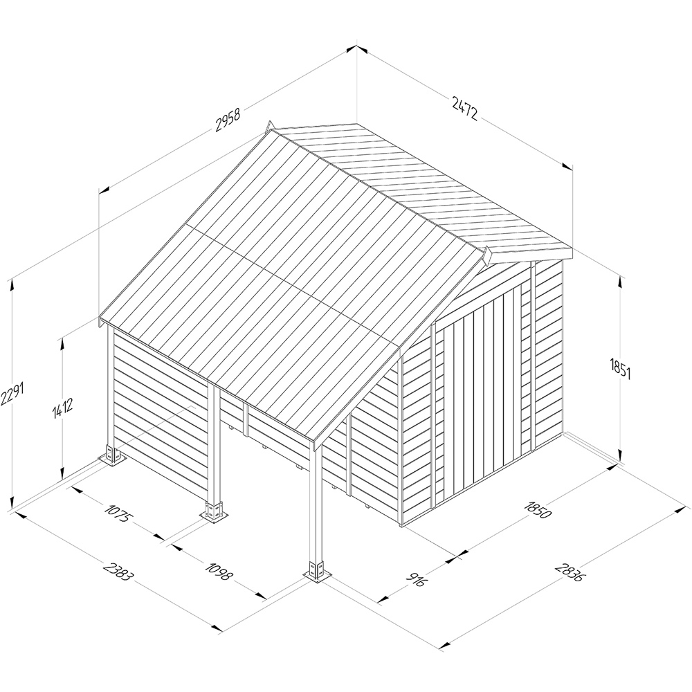 • Reverse apex shed with log store
