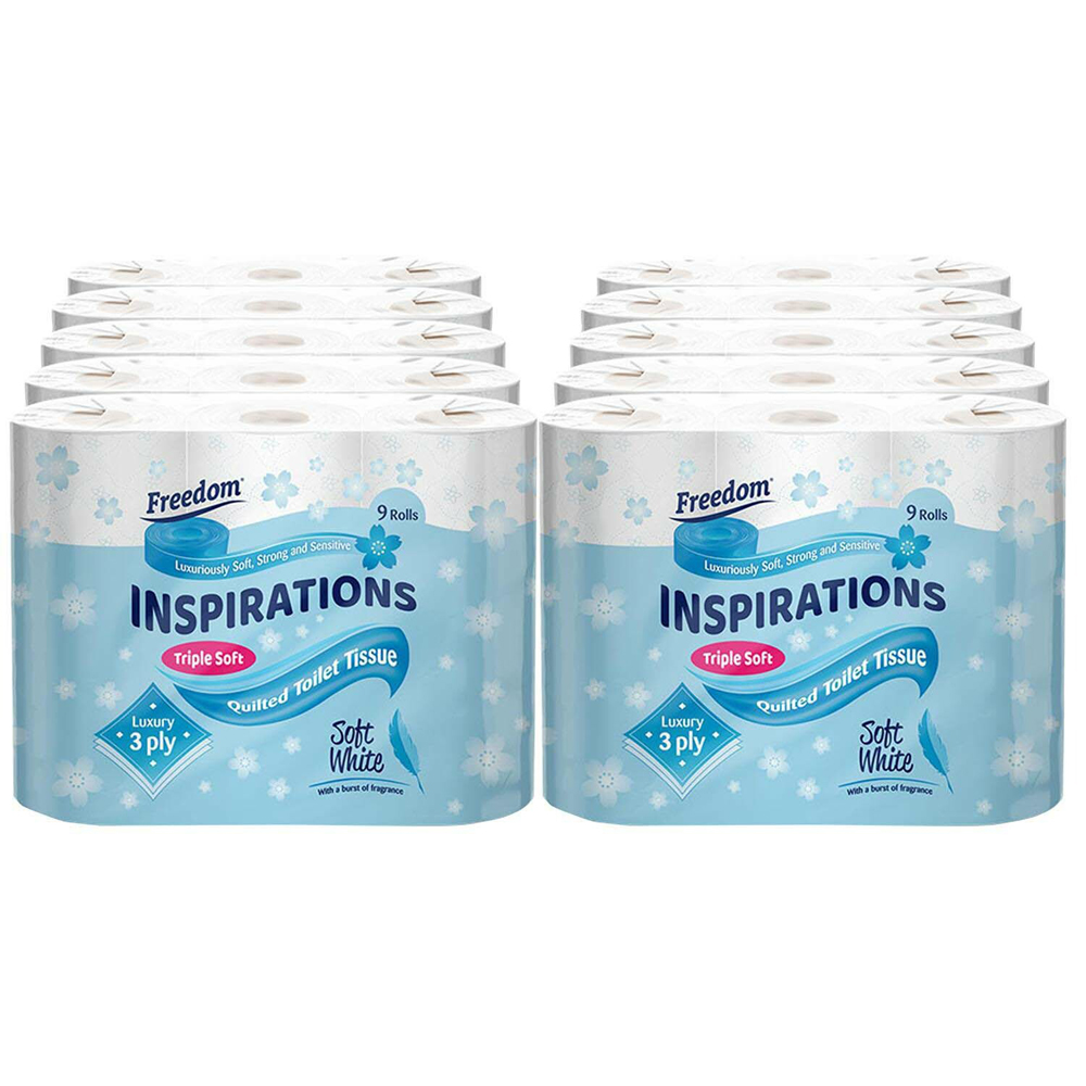 Experience the perfect blend of cleanliness and comfort with Freedom Inspirations Quilted White Toilet Paper. Designed for everyday use, these 3-ply toilet rolls bring a touch of luxury to your daily routine. Each roll features a beautifully deco-embossed, quilted surface made from sustainably sourced virgin pulp, ensuring softness and strength you can rely on.